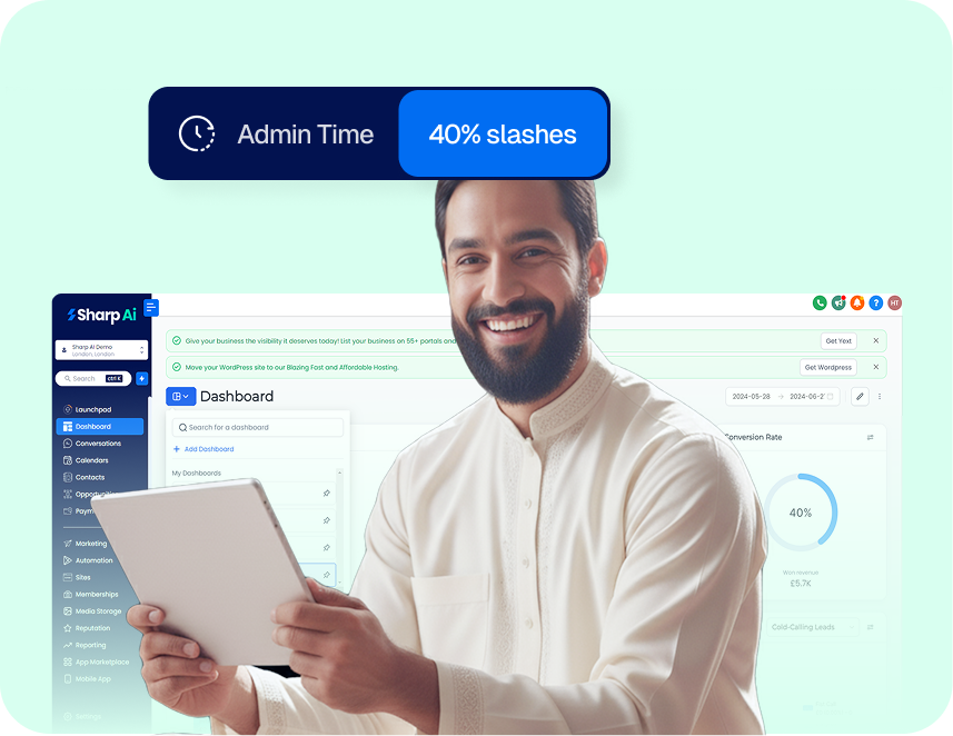 Sharp AI CRM centralizes operations, automates processes, and streamlines communication for better management.
